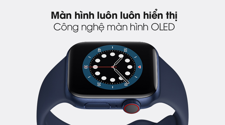 Apple Watch S6 LTE có màn hình sử dụng tấm nền OLED cao cấp, độ phân giải 324 x 394 pixels, đồng hồ còn được trang bị tính năng Always-on Display (màn hình luôn hiển thị) giúp người dùng dễ dàng xem giờ mà không cần thao tác chạm màn hình, giúp bạn không bỏ lỡ những thông báo quan trọng.
