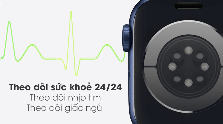 Đồng hồ có chế độ theo dõi nhịp tim với đèn cảm biến ở phía sau cùng thiết kế ôm sát giúp theo dõi nhịp tim sẽ liên tục, bạn sẽ nhận được cảnh báo khi nhịp tim có hoạt động bất thường. Ngoài ra, Apple Watch S6 còn có tính năng theo dõi giấc ngủ, nó sẽ phân tích cho bạn những vấn đề liên quan đến giấc ngủ, điểm ngủ, sau đó đưa ra đề xuất để bạn cải thiện giấc ngủ của mình nếu cần.