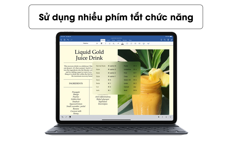 Sử dụng nhiều phím tắt cho iPad Pro giúp người dùng thuận tiện hơn trong công việc. Nhấn giữ phím Command để xem những phím tắt được tích hợp.