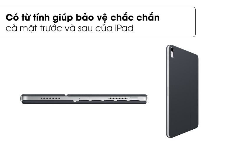 Bàn phím Apple với khả năng chóng nước và bụi cực tốt, có thể gập lại như bao da bảo vệ iPad Pro 11 khi không sử dụng. Lớp vỏ nhẹ, bền trên phụ kiện iPad Apple có thể bảo vệ cả mặt trước và mặt sau của iPad.