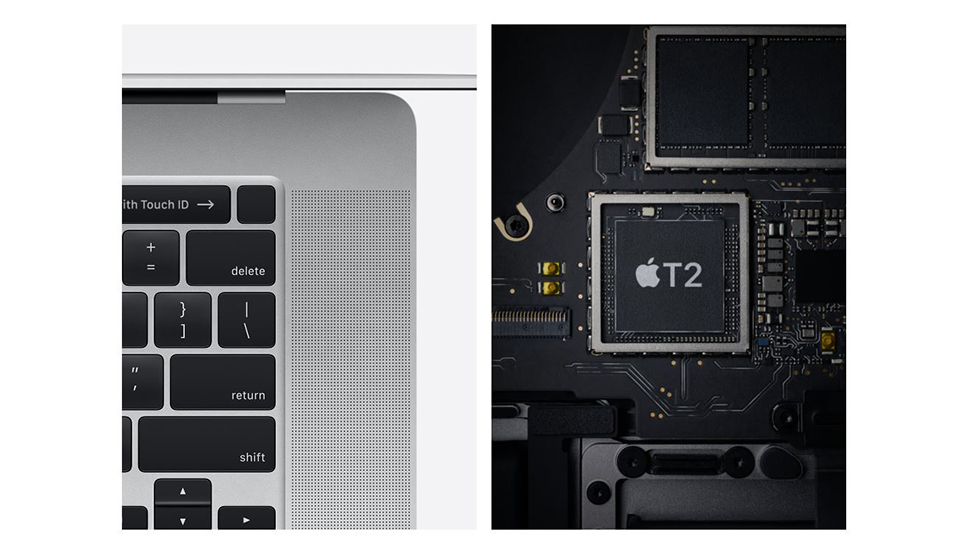 Mỗi chiếc MacBook Pro mới đều đi cùng chip bảo mật Apple T2 thế hệ thứ hai, giúp dữ liệu của bạn an toàn hơn. Con chip này bao gồm một nền tảng bảo mật hỗ trợ Touch ID cung cấp khả năng lưu trữ và mã hóa an toàn. Apple T2 sẽ đồng bộ cùng hệ thống, bao gồm cả âm thanh và ổ cứng SSD để bảo mật toàn diện, an toàn nhất.