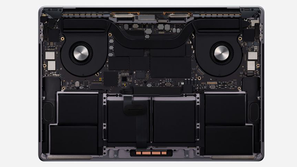 Để xây dựng một chiếc MacBook hoàn toàn mới, Apple đã thiết kế lại hoàn toàn cấu trúc nhiệt trên MacBook Pro 16 Touch Bar. Những cánh quạt lớn hơn được cải tiến về luồng khí tối ưu giúp tản nhiệt, làm mát hiệu quả hơn. Kết quả là luồng không khí tăng đến 28% và tản nhiệt hiệu quả hơn 35%. Bạn có thể làm việc trong thời gian dài mà hiệu năng vẫn mạnh mẽ một cách ổn định.